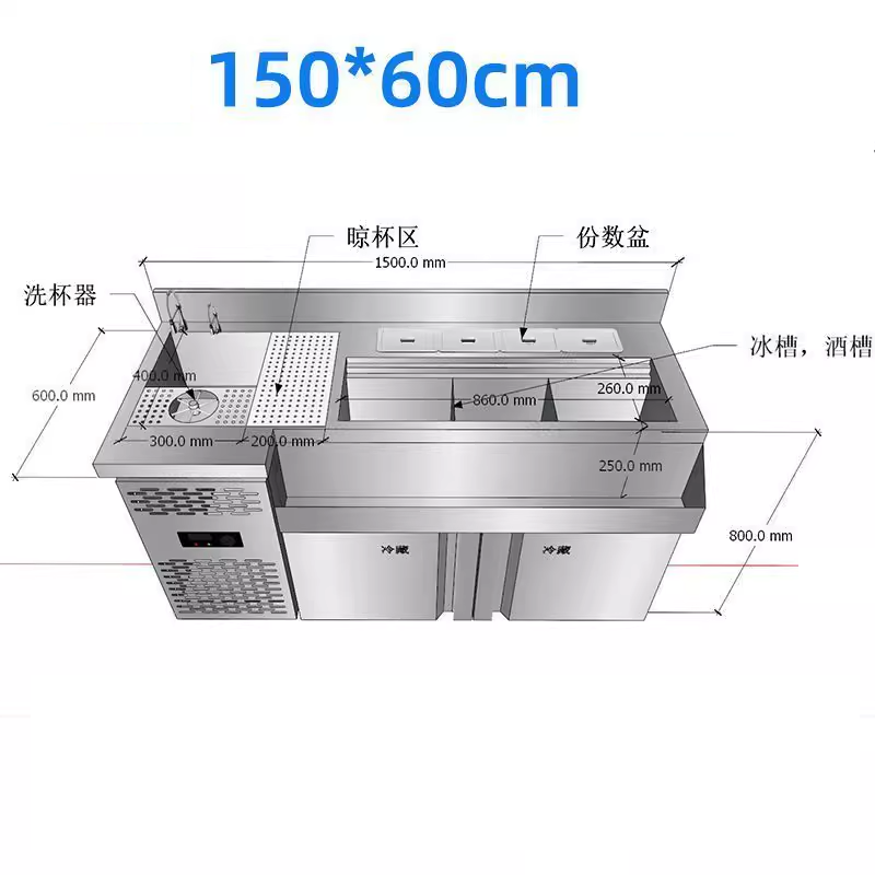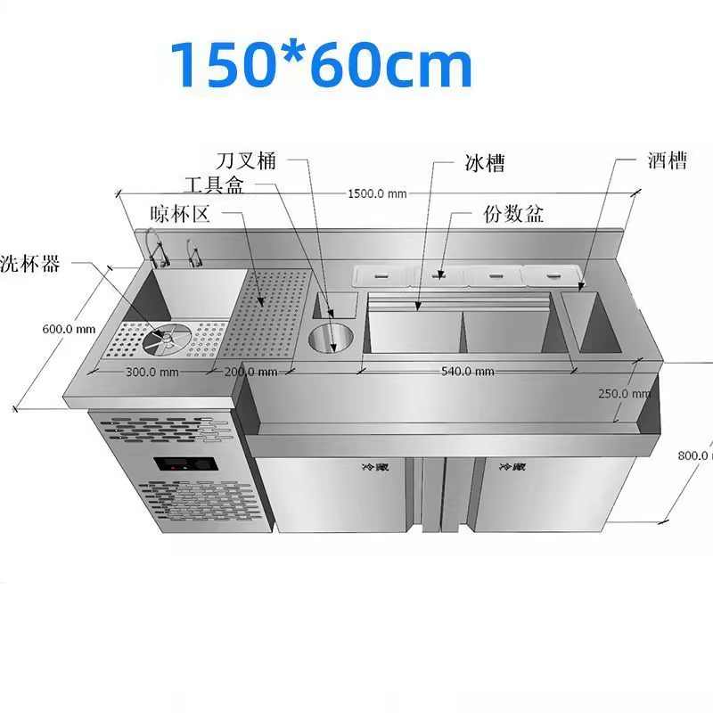 Refrigerated Freezer Stainless Steel Counter Workbench