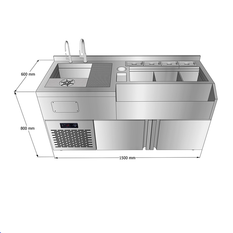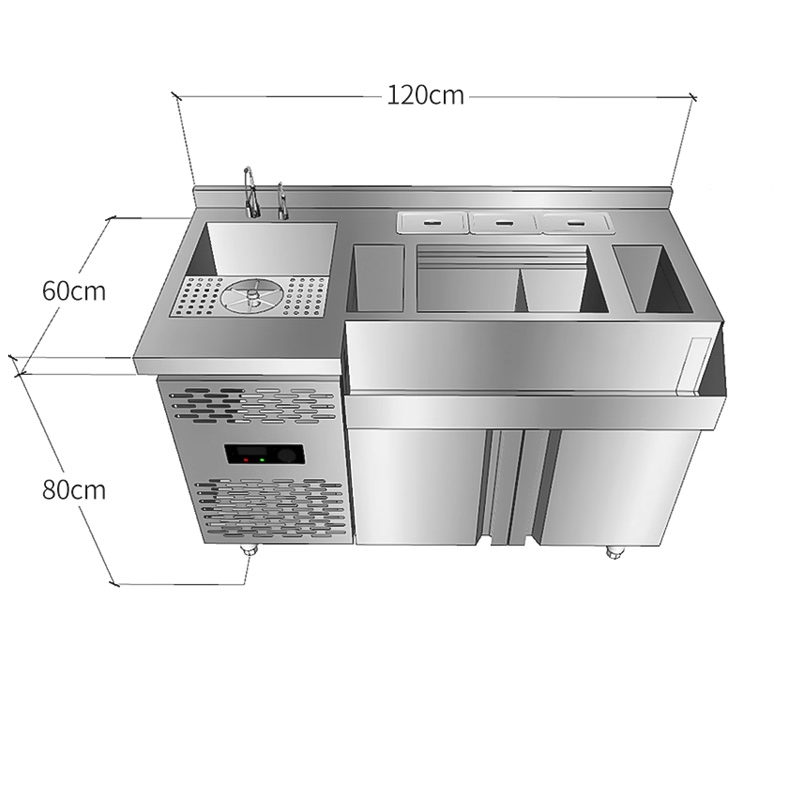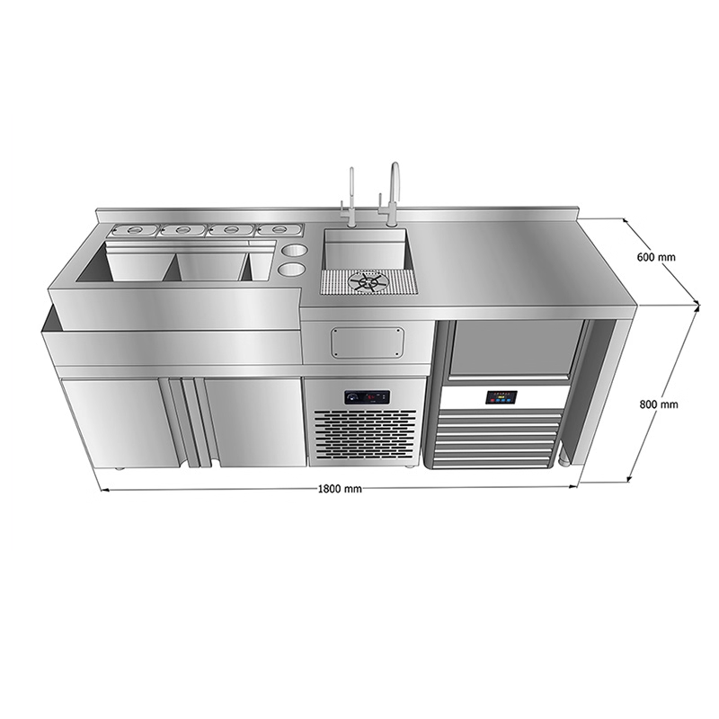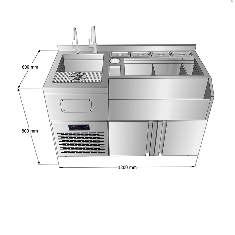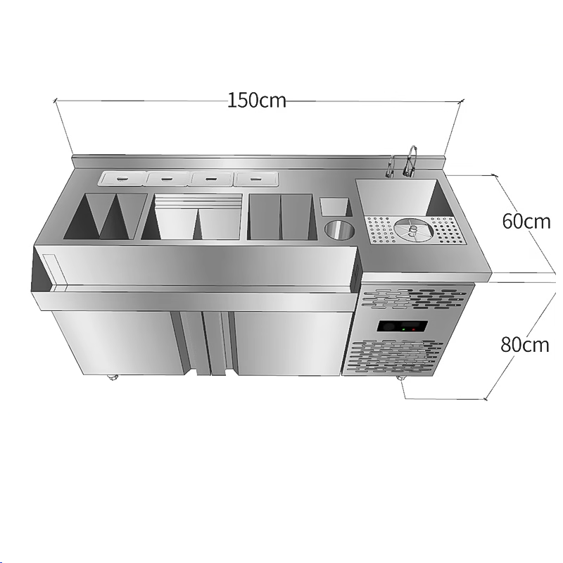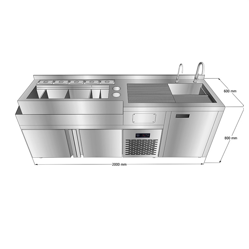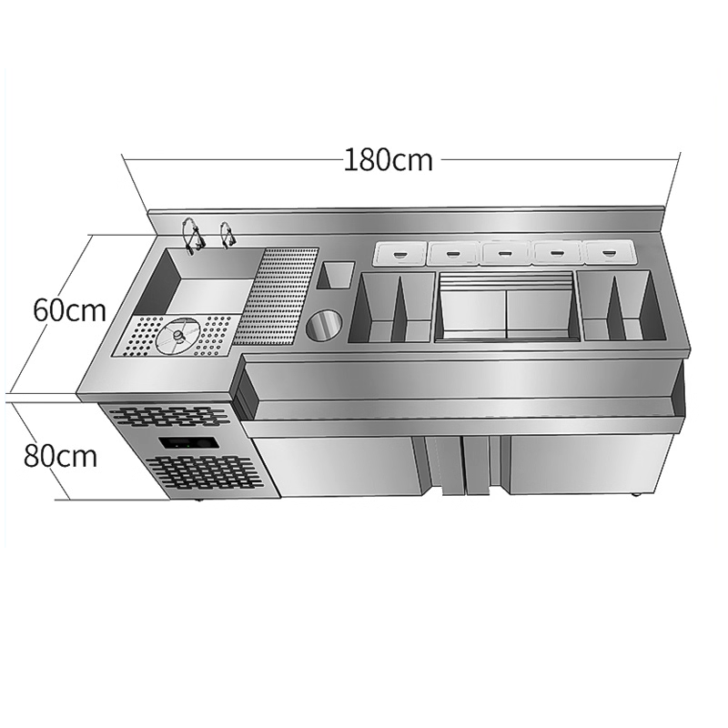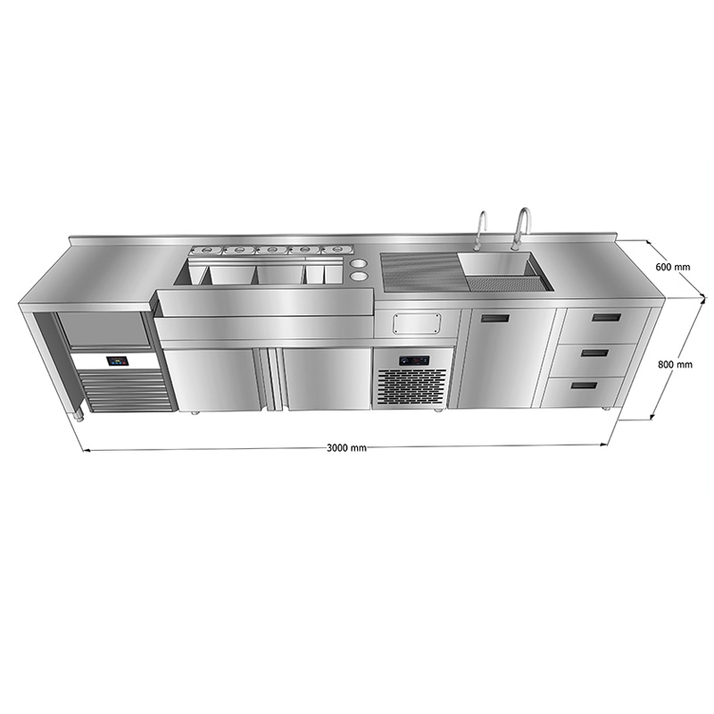 طاولة عمل بار كوكتيل من الفولاذ المقاوم للصدأ