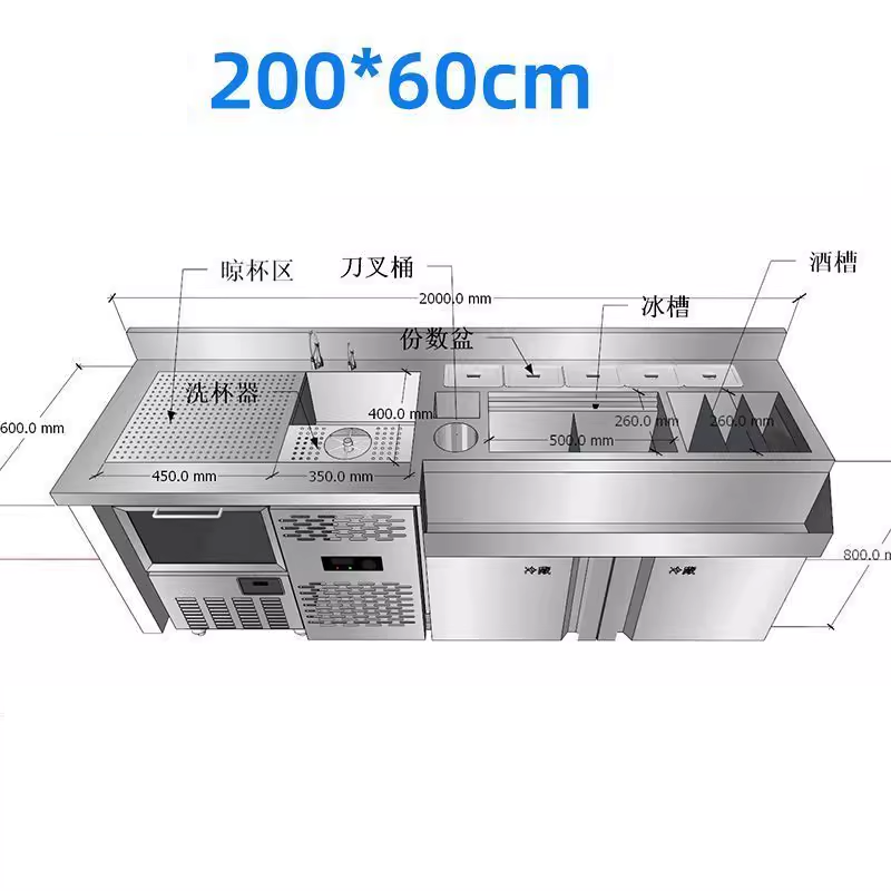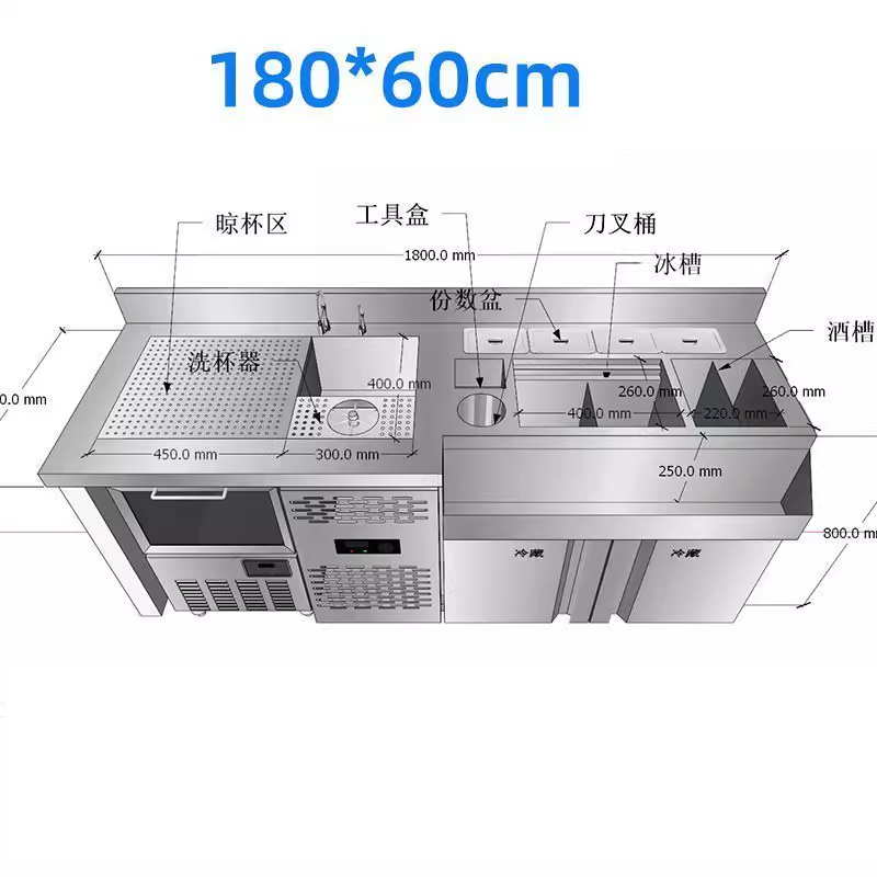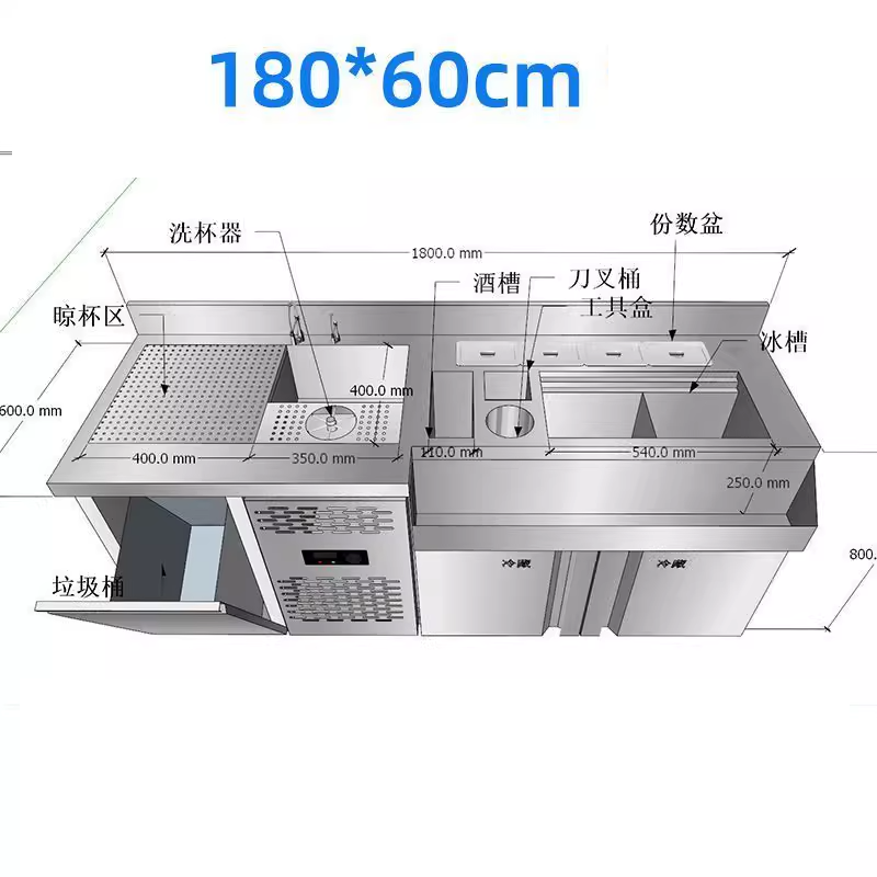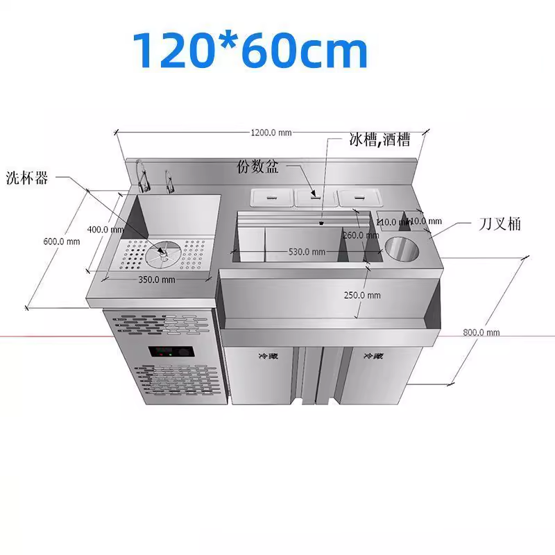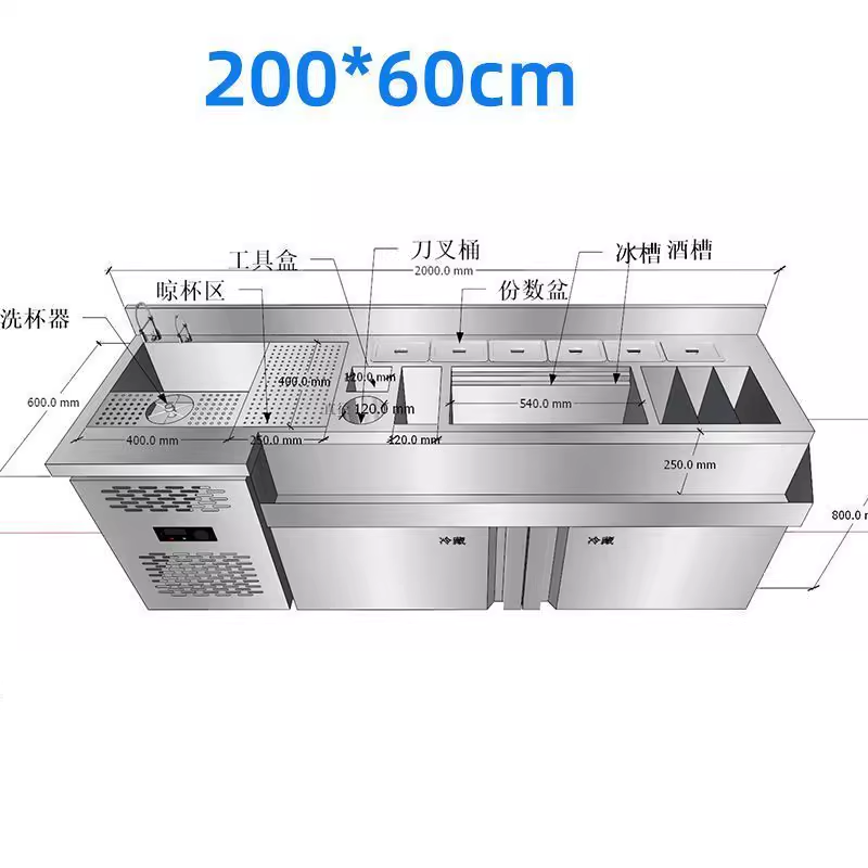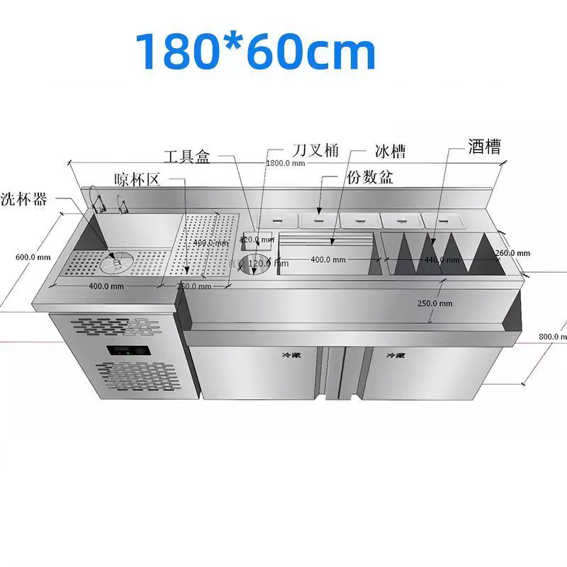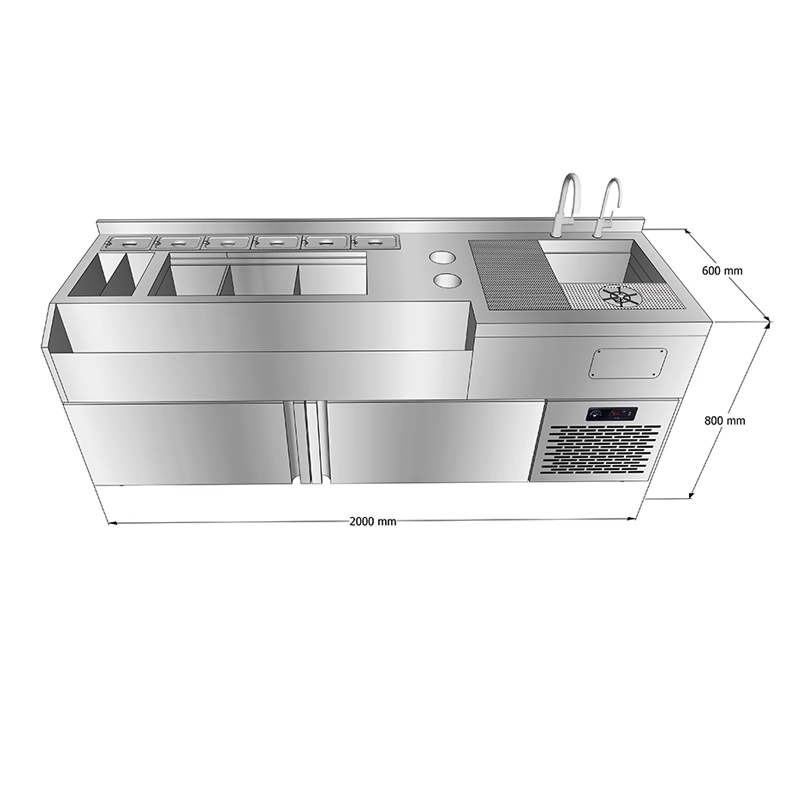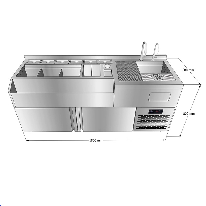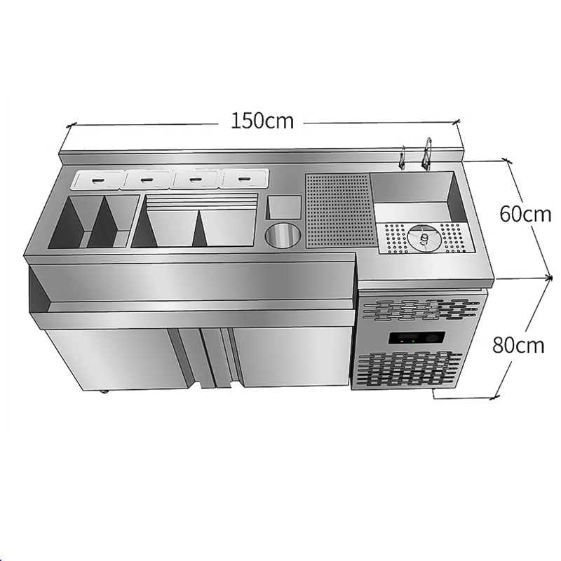 طاولة عمل بار كوكتيل من الفولاذ المقاوم للصدأ